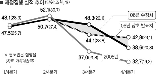 정부는 또 예산을 내년으로 넘기거나(이월) 남기지(불용) 말고 제때 남김없이 쓰도록 각 부처와 공기업들에 강도높게 주문했다. 이월·불용 규모가 정부 목표대로 ‘제로(0)’수준에 근접할 경우 4조원의 추가적인 재정지출 효과가 생긴다. 집행 실적이 부진한 사업들은 현재 분기별에서 월별로 실적점검을 강화하고, 특별한 사유없이 사업 집행이 부진한 부처는 중기 재정운용계획에 반영, 불이익을 줄 방침이다. 기획처는 지난 11일 제4차 재정관리점검단회의를 열고 이같이 결정했다고 밝혔다.