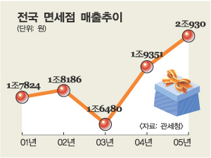 업계는 부산의 면세시장 규모를 연간 2000억원대로 추산한다. 공항 면세점이 있지만 순수 부산지역만 보면 롯데가 55%, 파라다이스가 45%로 양분하고 있다. 국내 면세점 시장 규모는 연 2조원대 안팎이다.