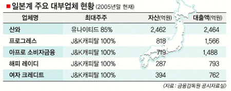 이처럼 재일동포를 비롯한 일본 자금이 국내 대부업계에 급속히 유입되고 있는 것은 일본과 비교해 높은 이자율 때문이다. 일본은 대부업 이자 상한을 29.2%에서 20%로 낮출 예정이어서 연 66%의 이자를 보장받는 한국 대부업계는 ‘황금알’을 낳는 시장이다.