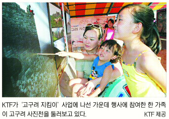 KTF는 지난 6일 ‘고구려 지킴이’ 사업에 나섰다. 한강 유역의 대표적인 고구려 유적지 아차산성의 정화 활동을 시작했다. 또 10월에는 초·중·고교 학생들을 대상으로 쉽고 재미있게 배울 수 있는 고구려 역사 교실을 운영한다.