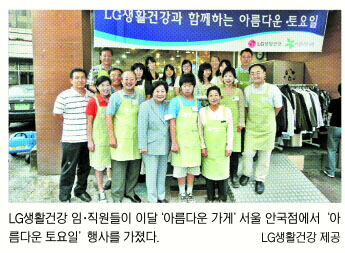 LG생활건강은 2001년 독립법인 출범 이후 기금 및 수익금, 물품지원 등을 통해 다양하게 사회공헌 활동을 펼치고 있다. 특히 여성의 건강과 행복, 국민 치아건강, 생활필수품 구호 및 판매 이벤트 등 사업영역과 긴밀히 연관된 공익적 활동으로 사회공헌을 특화해 지원효과를 극대화하고 있다. 생활용품 및 화장품 사업으로 창출한 부가가치들을 의미있는 사회적 공익으로 되돌리는 셈이다. 모자 여성 가장의 건강권 확보를 위한 ‘한부모가정 여성가장 건강돕기’의 기금은 임·직원과 회사의 매칭펀드를 통해 매년 1억 2000여만원이 적립된다. 올해에는 200명을 지원할 예정이다. 또 학교와 저소득층 아동시설에 치아건강 교육을 하는 ‘페리오 키즈스쿨’ 캠페인도 실시하고 있다.LG생활건강 소속 치위생사가 어린이들에게 건강한 치아 관리법을 지도한다. 이밖에 임·직원들의 물건을 판매한 수익금을 기부하는 ‘아름다운 토요일’ 행사 등도 있다.