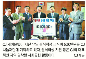 CJ 케이블넷이 실시하는 사랑나눔 캠페인이 지역 밀착형 사회복지의 모범사례로 부각되고 있다.