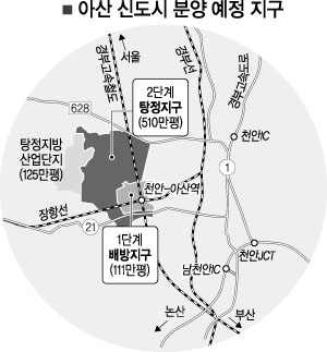 1단계 지역(111만평)은 2007년 3300가구·2008년 1500가구·2009년 2700가구가 공급될 예정이고,2단계 지역(510만평)은 2010년부터 총 5만가구가 공급된다. 인근에 국제적인 수준의 대규모 복합쇼핑몰과 상업·업무시설이 들어서는데다 삼성LCD공장 등 산업기반과 연계되는 등 자족도시로 육성될 예정이다. 모델하우스는 아산시 배방면 장재리 주택공사 아산신도시사업단 인근에 있으며 오픈은 이달 25일이다.