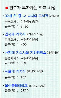 학교시설이 새로운 투자처로 떠오르고 있다. 학생들을 위한 시설이라는 공익성과 10년 이상의 장기투자라는 점이 투자자들의 관심을 끌고 있다. 정부가 사회간접자본(SOC)에 투자되는 재정부담을 덜기 위해 지난해부터 본격 추진하고 있는 임대형 민자사업(BTL)이 뒤늦게나마 성과를 내는 과정이기도 하다.