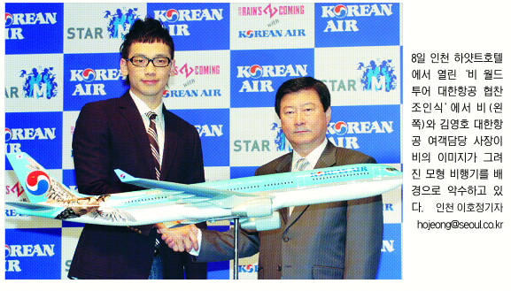 비는 대한항공이 주목하는 중국 상하이·광저우 등 4개 도시에서 공연을 한다. 비를 통해 중국 시장에서의 대한항공 이미지를 확산시키려는 포석도 깔려 있다.