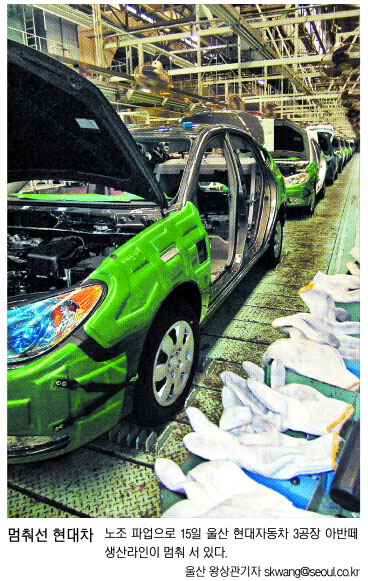 현대자동차 노동조합 집행부가 성과급 50% 미지급 문제로 15일 부분 파업에 돌입하자, 상당수 근로자들은 회사측과 노조 집행부에 실망감을 나타냈다.