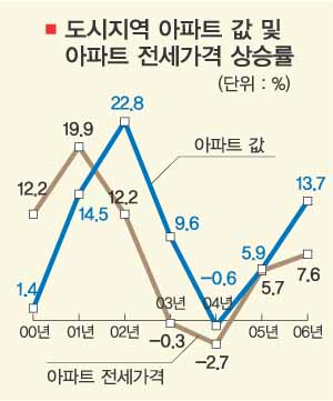 도시지역 아파트 전셋값도 7.6% 상승,2002년 이후 최고 상승률을 보였다.