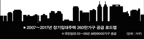 하지만 임대주택으로는 수익을 내기가 어려워 정부 스스로 연간 5000억원씩 재정에서 부담해야 한다고 밝힌 것은 스스로 족쇄를 찬 형국이 될 수 있다. 물론 나중에 임대주택을 팔아 매각차익을 남기면 적자가 보전된다고 하지만 임대주택을 짓는 주택공사의 부채만 22조원에 이르는 점을 감안하면 재정지원은 ‘밑빠진 독에 물붓기’가 될 수도 있다.