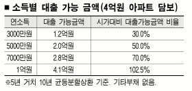 기존에 받을 수 있었던 대출금은 대출자의 소득과 상관 없이 2억 4000만원. 담보인정비율(LTV) 60%가 적용된 수치다.