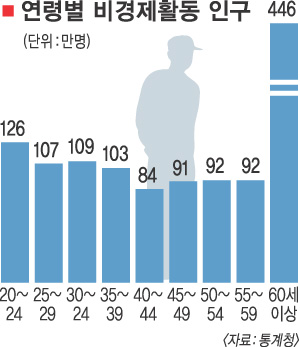 특히 1년 전보다 6만명이나 늘어 증가폭이 사상 최대치를 기록했다. 연령별 증가폭도 20대 후반이 가장 컸다. 이밖에 30대 후반과 50세 이상의 비경제활동인구가 증가한 반면 30대 초반과 40대의 비경제활동인구는 줄었다.