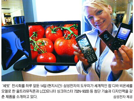 삼성전자는 915평 규모의 전시관을 마련, 울트라에디션Ⅱ, 고속하향패킷접속(HSDPA)폰 등 올해 글로벌 전략 휴대전화와 차세대 통신기술을 선보인다.2세대 울트라모바일PC(UMPC), 발광다이오드 백라이트유닛(LED BLU)을 채용한 30인치 LCD 모니터 등도 출품한다.