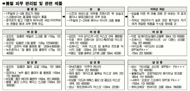 따뜻한 봄볕은 강한 자외선을 숨기고 있다. 겨울의 약한 자외선에 익숙해 있던 피부에 내려쬐는 봄철 자외선은 레이저처럼 강하게 피부노화를 촉진한다. 수시로 불어대는 봄바람은 피부의 수분을 앗아간다. 황사바람과 꽃가루까지 날리면 봄철 피부는 총체적인 비상사태에 빠진다.