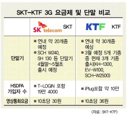 SKT는 글로벌로밍 서비스 등 KTF보다 콘텐츠 강점이 많아 언제든지 가입자 시장을 장악할 수 있다는 자신감을 갖고 있다.SKT는 3G 요금이 10초당 30원으로,KTF보다 6원 싸다.