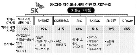 SK그룹은 오는 2009년 6월까지 현재의 복잡한 출자구조를 해소해 지주회사가 SK에너지화학,SK텔레콤,SK네트웍스,SKE&S,SKC,SK해운,K-Power 등 7개 주요 사업자회사를 거느리는 식으로 지분구조를 단순화할 계획이다.
