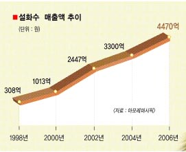 “끝에다 ‘수’를 붙이는 건 좀 이상하지 않아요? 생수 이름 같기도 하고.‘엑설런트’나 ‘어드밴스트’ 같은 건 어때요.” “용기가 촌스럽게 노란색이 뭡니까, 요즘 소비자들 안목이 얼마나 높은데.”1996년 가을 아모레퍼시픽 회의실은 날마다 진통의 연속이었다. 회사의 명예를 내건 프리미엄 화장품 출시 예정일(97년 3월)이 다가오고 있었지만 사내의 갑론을박은 잦아들지 않았다. 설화수(秀)의 산고(産苦)는 아모레가 만들어낸 어떤 화장품보다도 길고 강했다. 지난해 설화수의 매출액은 4470억원.2위 회사의 화장품 전체 매출을 웃도는 규모로 국내 화장품시장 단일 브랜드 부동의 1위다.