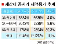 3억원 이하 주택은 평균 4.0%,3억∼6억원 이하 주택은 평균 9.6%오른다. 반면 종부세가 적용되는 6억원 초과 주택은 평균 39.3% 인상된다. 이에 따라 주택분 전체 재산세수는 지난해보다 1127억원 늘어난 1조 1272억원에 이를 것으로 집계됐다.