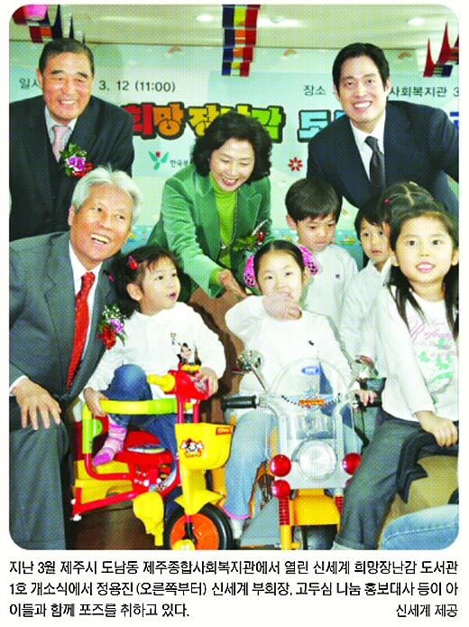 신세계는 올해부터 ‘희망장난감 도서관’이란 새로운 개념의 사회공헌 프로그램을 펼치면서 업계의 주목을 받고 있다. 빈곤가정 아동들을 상대로 장난감 및 각종 교육·치료 프로그램들을 제공해 주는 내용이다.