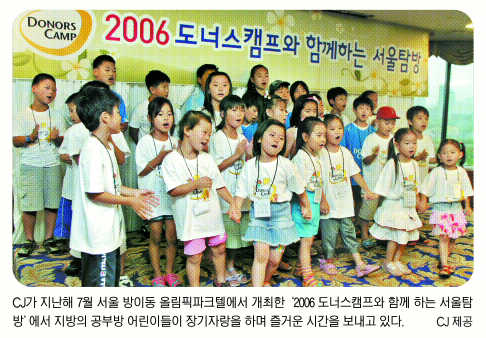 도너스캠프와 연계된 지역아동센터와 공부방 담당자가 도움을 필요로 하는 교육 제안서를 도너스캠프 홈페이지에 올려놓으면 CJ 임직원이 스스로 선택해 기부하는 형식이다. 그동안 어린이 1만여명이 도움을 받았다.