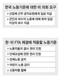 그러나 우리 정부는 공익요원 등의 복무를 강제노동이라고 인정하지 않으며 따라서 미측의 요구를 받아들일 수 없다고 밝혔다. 이에 따라 일단 합의된 한·미 FTA의 관련 조항 수정 문제를 둘러싸고 두 나라 정부 간에 적지 않은 논란이 예상된다. 또 양국 의회에서의 합의안 비준 및 승인에도 진통이 따를 것으로 전망된다. 한편 미 정부와 의회는 이날 외국과의 FTA 협상에 적용할 노동·환경 기준을 타결했다고 공식 발표했다.