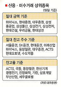 신용거래는 주가가 오를 때는 큰 문제가 없다. 반면 주가가 떨어질 경우 해당 종목이 매물로 쏟아져 주가의 낙폭이 커지고 투자자의 손실이 늘어난다. 이 과정에서 돈을 빌려준 증권사도 손실을 볼 수 있다. 금융감독원에 따르면 19일 현재 신용융자규모가 5000억원에 이른 증권사는 5곳이며, 자기자본 대비 30% 이상을 신용거래중인 증권사는 12곳이다.