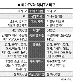 메가TV와 하나TV 가운데 딱히 어느 한쪽이 우세하다고 말하기는 어렵다. 그만큼 장점과 단점을 다 갖고 있다.