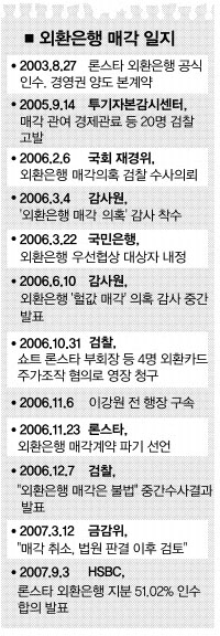 또한 내년 1월쯤 나올 것으로 예상되는 법원 1심 판결에서 론스타의 2003년 외환은행 인수에 법적 하자가 없다고 나오면 금감위로서는 매각 승인을 미룰 수 없게 된다. 반대로 법원이 불법성을 인정하고 피고인들이 항소를 하지 않으면 금감위는 론스타의 외환은행 인수를 직권 취소해야 하고, 론스타는 외환은행 보유 지분을 팔아야 한다. 어찌되든 론스타가 외환은행을 매각할 수 있다는 것이다.