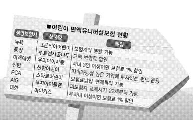 어린이보험에도 변액유니버설(VUL)이 등장하고 있다. 어린이 변액유니버설은 부모의 종신보험과 어린이보험이 합쳐진 보험이다. 자녀가 특정 연령이 되기 전에 부모가 사망하면 사망보험금과 함께 자녀의 학자금과 생활비가 지원되도록 설계됐다. 상해·질병·암 등을 특약으로 부가, 어린이보험처럼 쓸 수 있다. 변액유니버설 기능이 있어 투자실적에 따라 받는 보험금이 변하면서 보험료 납입기간 2년이 지나면 보험료 추가납입과 적립금 인출이 가능하다. 어린이 변액유니버설은 자녀가 20대 특정 연령이 되면 피보험자를 부모에서 자녀로 바꿀 수 있다. 부모가 가입하던 종신보험을 자녀가 그대로 이어받아 상속 수단으로도 쓸 수 있다.