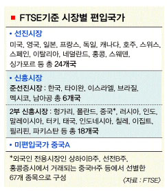 선진국지수에 편입될 경우 선진국 시장에서 우리나라가 차지하는 비중은 2%다.