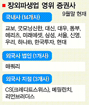 2003년 시작된 장외파생업무 자격증이 있는 증권사는 9월말 현재 18개다.23일 증권업계에 따르면 인가 신청을 낸 증권사는 국내사가 4개, 외국계 증권사가 6개다. 외국계의 신청이 늘면서 과다규제 논란이 더욱 커지고 있다.