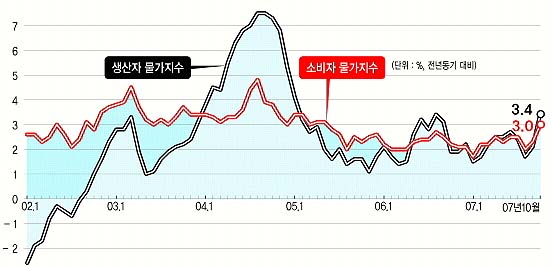 김석동 재정경제부 1차관도 이날 정례브리핑에서 “소비자 물가가 11∼12월에도 3% 안팎의 상승률을 보일 가능성이 있다.”고 밝혔다.
