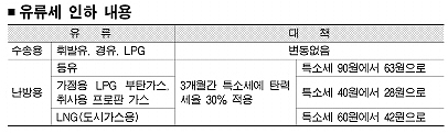 난방용 유류만 특소세 30% 한시적 인하