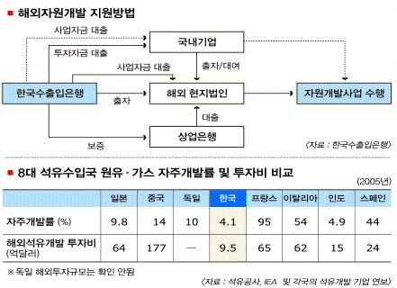 ‘시동’이 다시 걸린 것은 2002년. 베트남 15-1광구(석유)의 본격 개발을 시작으로 2005년 해외자원개발 총투자금액이 10억달러를 돌파한 뒤 지난해 21억달러, 올해 38억달러가 예상되는 등 성장세가 계속되고 있다. 베트남 15-1 광구를 비롯해 리비아 NC174 광구 석유개발사업, 베트남 11-2 광구 가스전 개발사업 등에서는 생산이 이뤄지고 있다. 페루 카미시아 가스전, 예멘 마리브 가스전 개발사업 등은 상용화를 눈 앞에 두고 있다. 대부분 수출입은행의 자원금융의 손길을 받은 ‘작품’들이다.