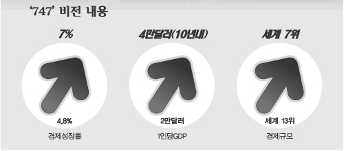 이 당선자가 내건 5%가 넘는 고성장도 수출과 함께 안정적인 내수 시장이 뒷받침해야 가능하다고 많은 경제학자들은 지적하고 있다. 고성장을 통해 중산층을 늘린다는 논리는 앞뒤가 바뀐 셈이다. 성장이 기대만큼 이뤄지지 않으면 각종 감세정책조차 현실화되기 어렵다. 갈등을 효율적으로 조절하고 사회적 재화를 합리적으로 나누는 정치 본연의 역할이 새 정부에 기대된다.