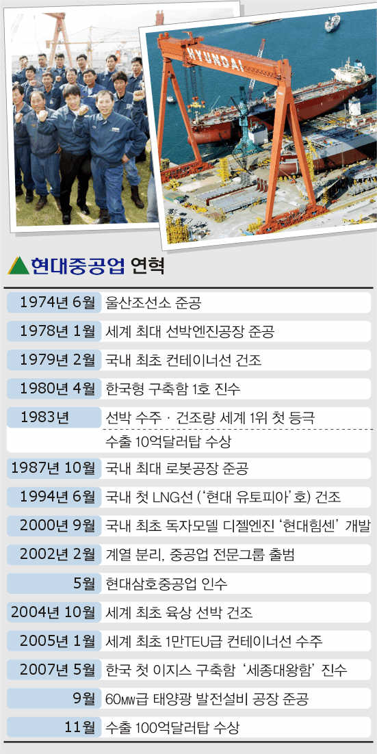 30여년 전만 해도 우리나라의 연간 선박 건조량은 50만t에 불과했다. 세계 시장 점유율로 따지면 1%도 채 안 됐다. 반세기도 안 되는 짧은 기간에 ‘조선강국 코리아’로 도약한 것이다. 그 중심에는 조선업계의 맏형 현대중공업이 있다. 그러나 그 시작은 결코 간단치 않았다.