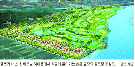 엠코는 베트남 하이퐁에서 총 3800억원 규모의 송 지아(지아강) 복합리조트 개발 사업을 2008년부터 본격화한다. 수도 하노이에서 동쪽으로 70㎞ 떨어진 항구 도시 하이퐁시에 골프장, 테마마크, 상업시설, 호텔 등으로 이뤄진 복합리조트를 짓는 사업이다. 총 624만㎡(188만평) 규모다. 단일 리조트로는 하노이에서 가장 크다는 게 엠코측의 설명이다.