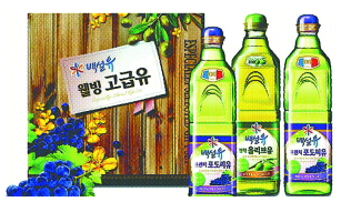 웰빙 고급유 1호는 100% 프랑스산 포도씨유인 백설유 프렌치 포도씨유 900㎖ 2병, 스페인산 올리브유인 압착올리브유 900㎖ 1병 등 가정에서 쓰임새가 좋은 고급 기름으로 구성했다고 회사측은 설명한다. 할인점 기준 2만 7700원.