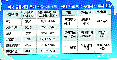 20일 금융권에 따르면 지난달 한국투자공사(KIC)의 메릴린치 지분투자를 계기로 본격화된 투자 대열에 은행을 비롯한 각급 금융기관들이 동참하고 있다.