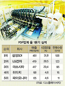 한국 PDP업계가 최근 이 분야의 ‘절대강자’로 군림해온 일본 마쓰시타를 꺾었다. 매출과 수량면에서 모두 한국업체가 2년여만에 1위 자리를 탈환했다.