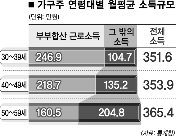 합산 근로소득 月247만원… 40·50대부부 앞질러