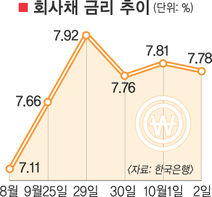 한편 한은은 9일 열리는 금융통화위원회에서 기준금리를 현행 5.25%에서 동결할 것으로 전문가들은 예상되고 있다. 미국의 금융위기가 실물경제에 영향을 미칠 가능성이 높아졌고 원·달러 환율이 1223.50원까지 치솟은 데다 소비자물가 역시 5.1%로 목표물가를 웃돌고 있기 때문이다.