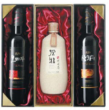 양조전용쌀인 설갱미로 빚은 고급 약주인 ‘주담’은 알코올 도수 15도로 순하고 우리 음식과도 궁합이 잘 맞는다. 주담(700㎖) 2병과 전통주잔이 들어 있고 가격은 1만 9000원. ‘명작 VIP 세트’는 슬림한 외관의 와인병에 명작시리즈인 ‘명작 오미자주’, ‘명작 상황버섯주’, ‘명작 복분자주’를 담았다.