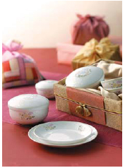 ‘매난국죽 칠첩반상기’는 예부터 선비들의 고결함과 높은 인품을 상징했던 사군자를 소재로 했다. 전체적으로 화려하지 않으면서도 단아한 디자인으로 사군자의 고결한 느낌을 살렸다. 전체적으로 동양적인 느낌을 가미하여 고급스러움이 느껴져 설 선물로 안성맞춤이다. 21개 1세트가 31만원.