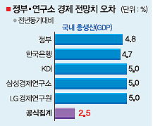 정부는 물론 한국은행, 국책 및 민간연구기관 등 내로라하는 전문기관들의 경제예측이 크게 빗나간 것으로 나타났다.