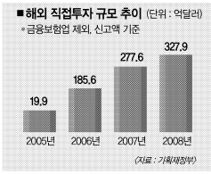 지난해 우리나라의 해외 직접투자가 300억달러를 돌파한 것으로 나타났다. 활발한 해외자원 개발에 힘입은 결과로, 2003년 이후 6년째 상승세를 기록하고 있다. 다만 4·4분기 실적은 지난해 같은 기간보다 25%가량 줄었다.