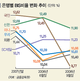 국제결제은행(BIS) 자기자본 비율 8%가 넘는 은행들에 대해서도 공적자금을 투입하는 방안에 관심이 쏠리고 있다. BIS비율이 금융경색을 더 심화시키는 원인으로 꼽혀왔기 때문이다.
