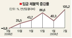 임금을 받지 못한 근로자는 4만 2166명으로 지난해 같은 기간 2만 4889명보다 69.4% 증가했다. 미국발 금융위기가 발생하기 이전인 지난해 9월까지 월평균 임금 체불 근로자는 1만 9000명, 체불액은 714억원이었다.