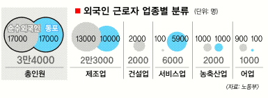 정부는 올해 1차 취업연한(3년) 제한에 따라 출국 대상인 외국인 근로자 6만 6000명 가운데 재고용(2년 연장 가능) 인원 4만 9000명을 제외한 1만 7000명이 국내 인력으로 대체되기를 기대하고 있다.