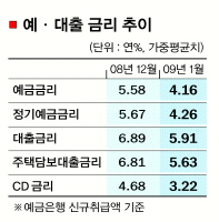 이날 91일물 양도성예금증서(CD) 금리는 연 2.43%를 기록했다. 그러나 CD금리에 연동되는 주택담보대출 금리는 여전히 연 5%대다. CD금리는 지난 연말(3.93%)에 비해 약 40%나 떨어졌음에도 불구하고 은행들이 가산금리(3%포인트 안팎)를 올리거나 그대로 유지하고 있기 때문이다. 이로 인해 신규대출 고객들의 부담과 원성이 적지 않다.