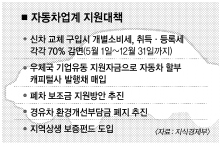 정부는 26일 경기 중소기업종합지원센터에서 이명박 대통령이 주재한 제13차 비상경제대책회의를 열고 이같은 내용의 자동차산업 활성화 방안을 마련했다. 그러나 이번 대책은 사실상 국민의 혈세를 지원하는 것과 같다는 점에서 자동차업계의 자구 노력과 선진화된 노사관계 개선을 전제로 하고 있다.