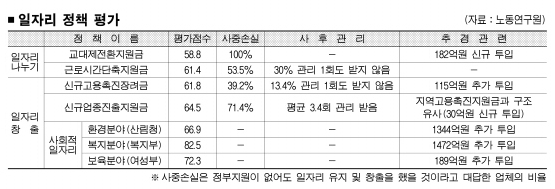 한국노동연구원이 2004년 일자리 정책에 대해 평가해 2006년 발표한 ‘일자리 창출 사업 평가’에 따르면 정부는 정책의 효과를 높이기 위한 보완책을 준비하는 한편 지원금에 대한 사후관리를 철저히 해야 한다.
